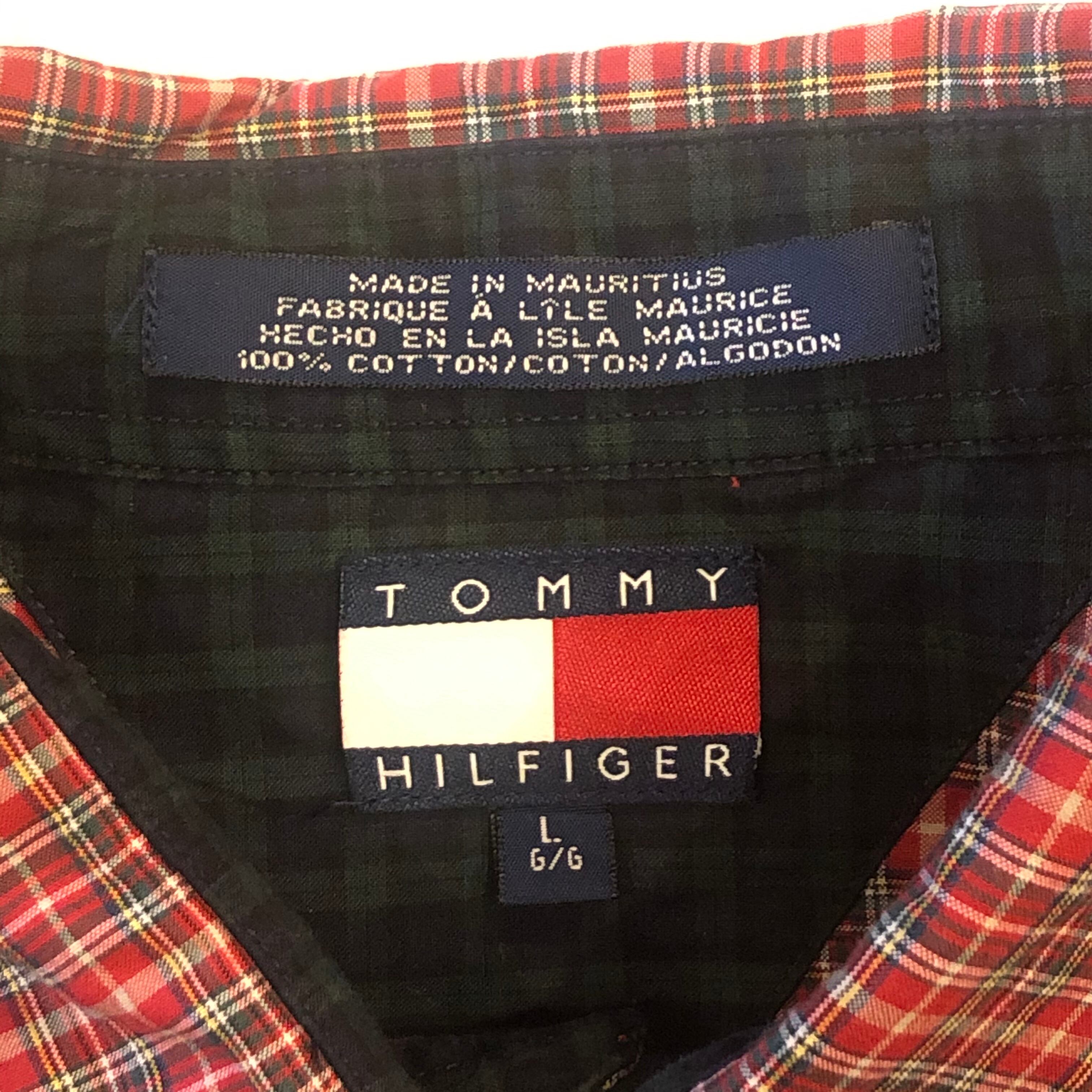 古着 90s トミーヒルフィガー TOMMY HILFIGER コットン チェック 半袖シャツ メンズL
