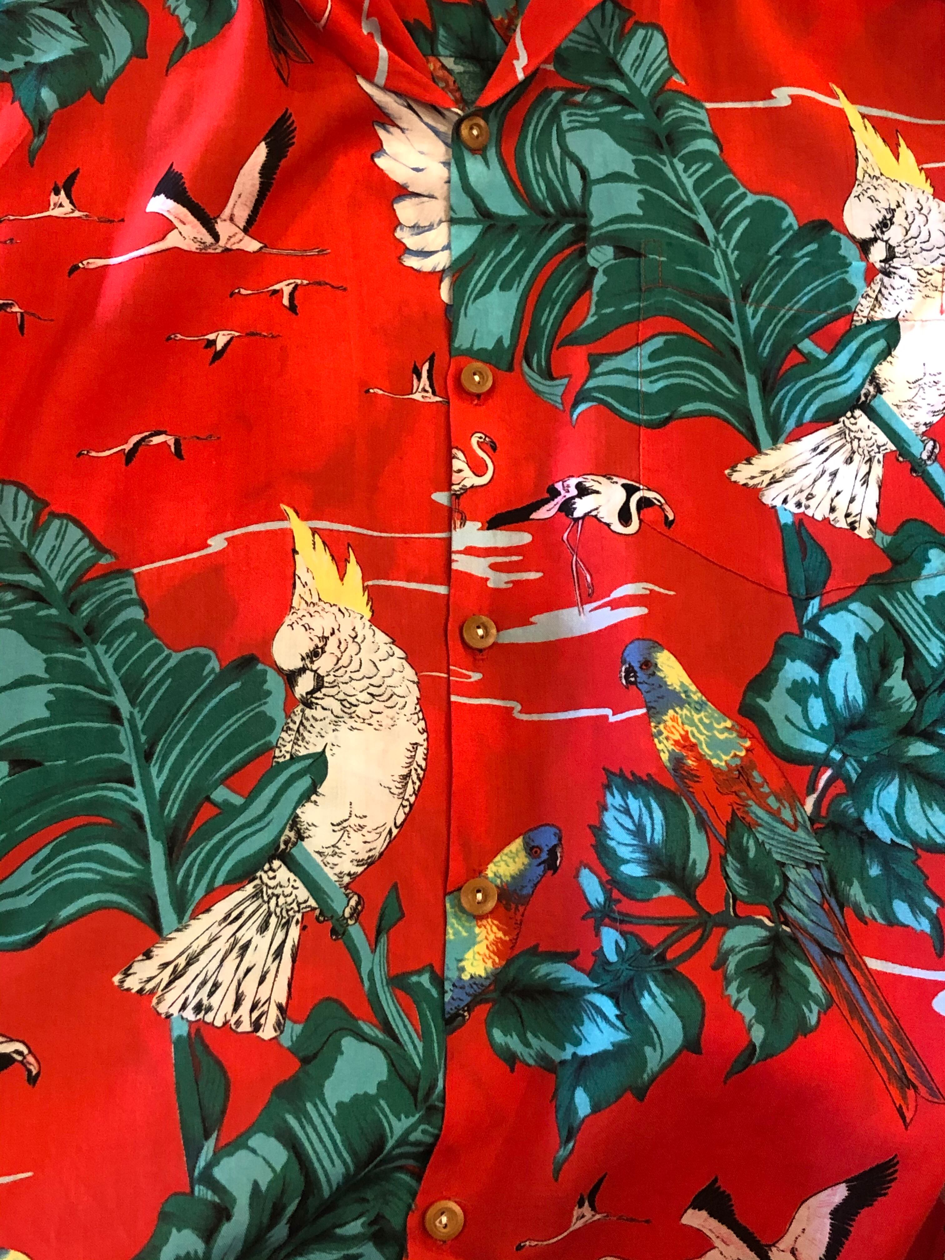 古着 PARADISE FOUND made in HAWAII 鳥総柄 ハワイアンレーヨンシャツ