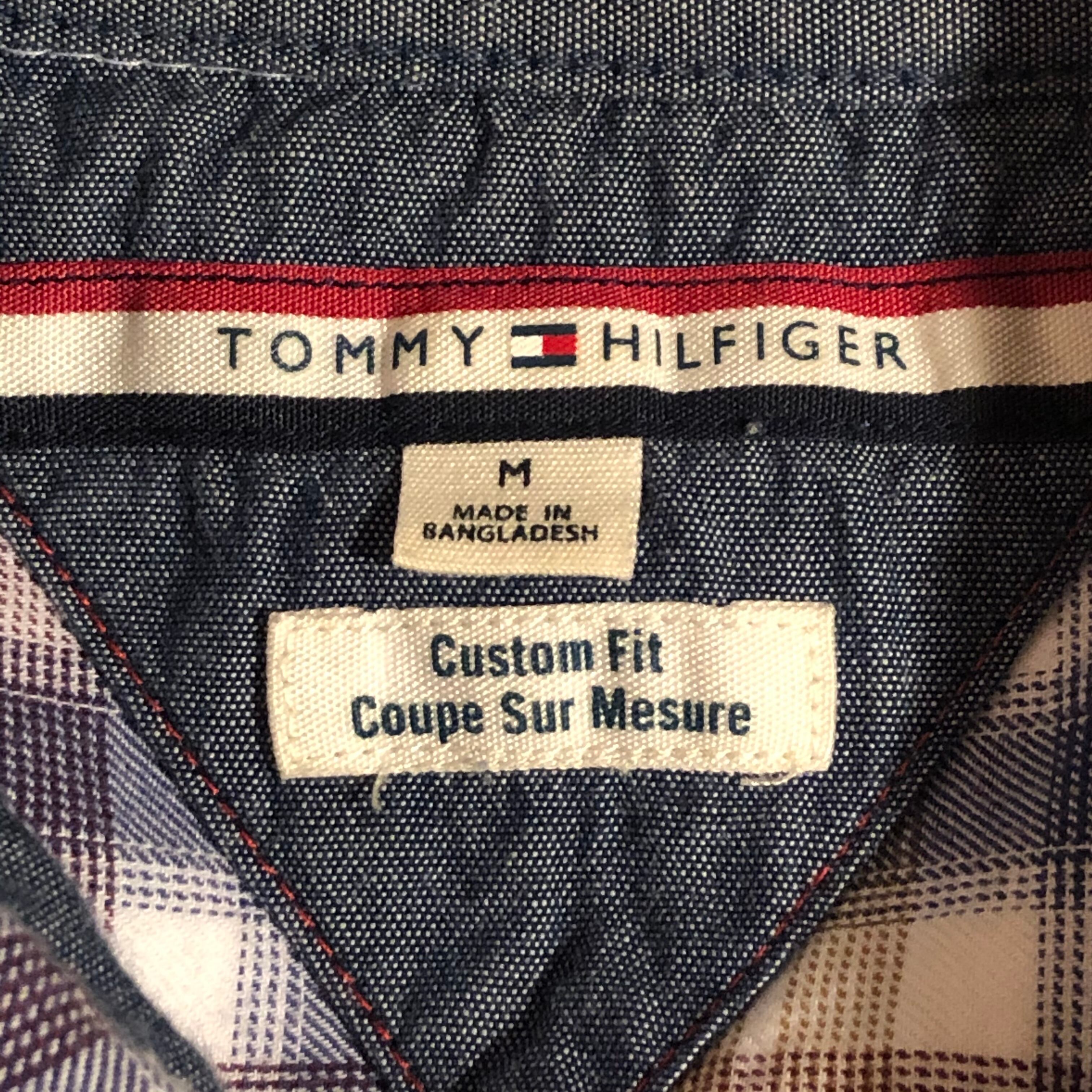 古着 TOMMY HILFIGER Custom Fit Coupe Sur Mesure 2way チェック長袖シャツ M